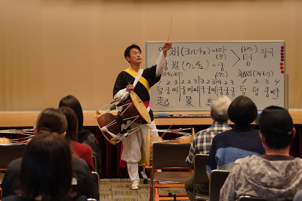 大会前には、サムルノリのワークショップもあり、たくさんの方が体験しました。